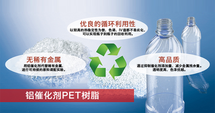 铝合金催化PET树脂是有很高的耐热稳定性能,在熔融时不易变色,适合追求透明性的清凉饮料水等的瓶罐回收,实现瓶罐→瓶罐的可能性。
